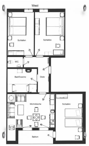 3 getrennte Schlafzimmer ( 1x 2 Pers. / 1x 2 Pers. + Kinderbett) +